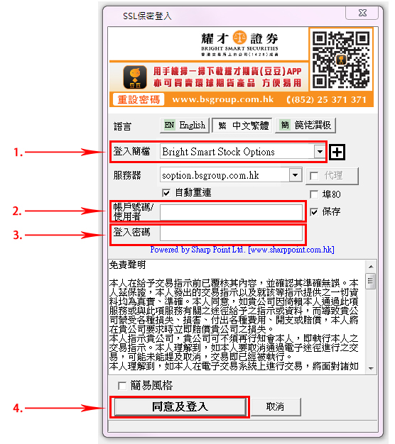 1. 請于「登入簡檔」內,請選擇「Bright Smart Stock Options」