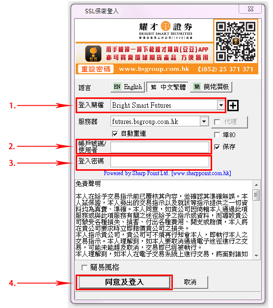 1. 請「登入簡檔」內,請選擇「Bright Smart Futures」